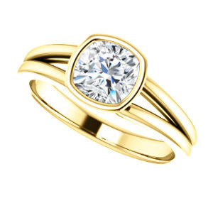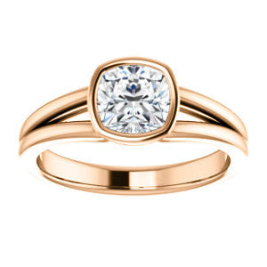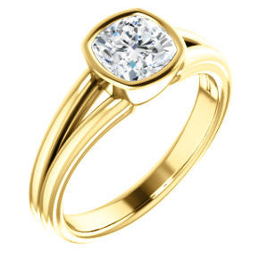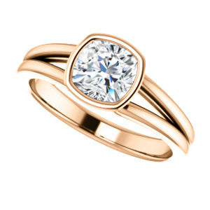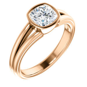 Your sweetheart doesn't want gaudy adornments. She has the confidence that she can look amazing without trying too hard. She doesn't need "glam" jewelry in the same way that she doesn't court drama in her life. She appreciates well-made things and simple beauty. That's why you want to find an uncomplicated yet still gorgeous engagement ring, without doubt made only of the finest materials by the best craftsmen. The Bernadine is one of the simpler engagement or purity ring jewelry pieces in our CubicZirconia.com catalog, yet there's no surprise this is such a popular ring. The Bernadine combines sleek metallic design in any of 12 precious metals we manufacture from with the sizable diamond-quality sparkle that your lovely lady wants and deserves. Choose 0.65 to 5.0 carats in Cushion cut for the eye-catching solitaire center stone, or use the link provided to customize to any of 10 available center stone shapes.