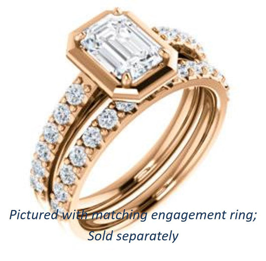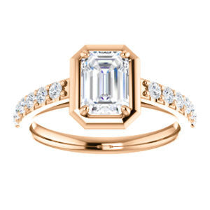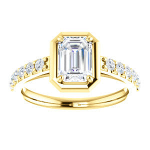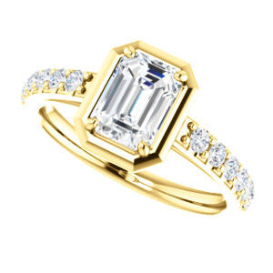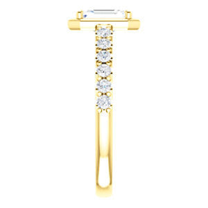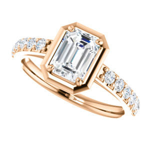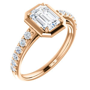 Center Stone Shape: Radiant Cut (as pictured with Emerald cut). See this customizable ring set with other available center stone shapes here: customize setting.