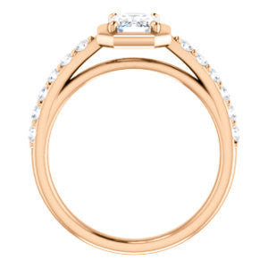 This brilliant-shine, cathedral-style, bezel-set engagement ring stands out from the crowd with fourteen (14)* round, shared-prong-set accent stones. She'll wear it with pride, whether the ring is made with an unassuming 0.33 carats of diamond-quality Radiant Cut cubic zirconia all the way up to 3.0 carats for the center stone. This ring is an ideal contemporary design, made for the woman who is no-nonsense in life and love. The Lynette will be sure to elicit a "yes" from the dynamic woman who has captured your heart, and when she tries it on if her eyes don’t light up the way you and we expect…well, there’s always the CubicZirconia.com 60 day money-back guarantee. After all, if you’re lucky she’ll only be wearing one engagement ring and we want it to be just what she wants. Get The Lynette engagement ring as a stand-alone or together with the matching anniversary band to complete the cubic zirconia bridal set!