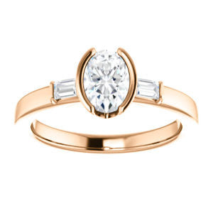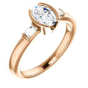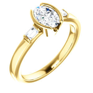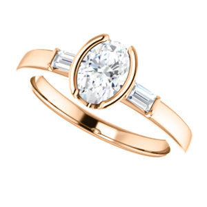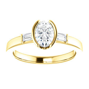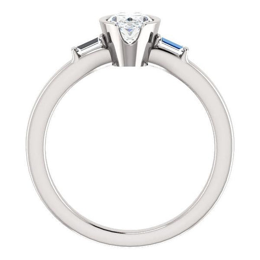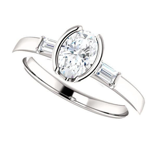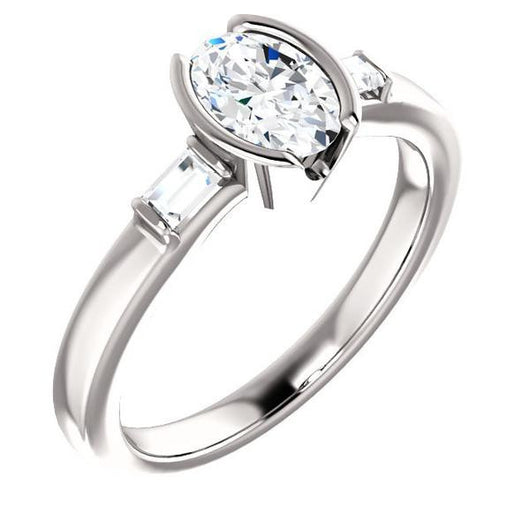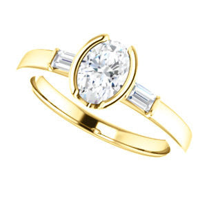 Cubic Zirconia Engagement Ring- The Stephanie (Customizable Bezel-set Oval Cut 3-stone with Baguette Accents)