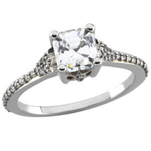 Carat Weight: Choose your center stone weight from 0.75 CT, 1.0 CT, or 1.25 CT using the drop-down menu below (As pictured: 0.75 Carat Asscher Cut center stone, 0.94 Carat TCW*).