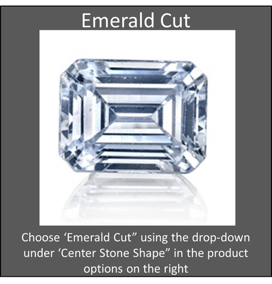 The Emerald Cut – the emerald cut, or emerald octagon cut (aka rectangular octagon), borrows its name from the ideal way to cut green emerald stones. That happens to be shaping a green emerald into this elongated octagon shape! The shape's elongated style with with non-equal length and width naturally creates longer facets than a smaller stone or squared shape would have. The effect? The emerald cut stone's long, step-cut facets reflect more light and make the stone appear larger than it actually is. Unconfirmed internet reports claim this stone is frequently chosen as a gift by men with less well-endowed bank accounts (more bang for your buck so to speak...sorry, we couldn't resist).