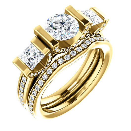 CZ Wedding Set, Style 04-24 feat The Katie engagement Ring (Customizable Bar Setting with Round Prong Accents)