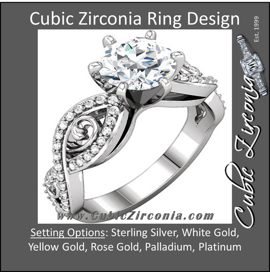 Cubic Zirconia Engagement Ring- The Tanya (0.25-1.0 Carat Round Curlicue Split-Band Pave)