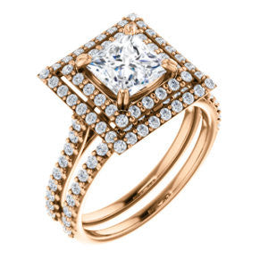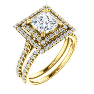 CZ Wedding Set, featuring The Alexandra engagement ring (Customizable Princess Cut Double Halo Center with U-Pave and Pavé Band)