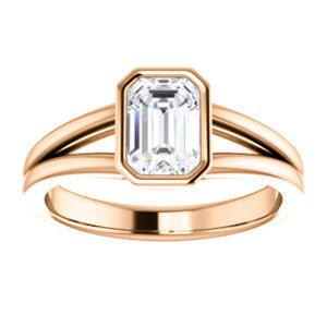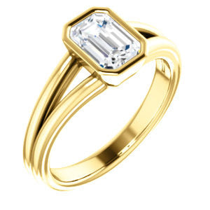 Your sweetheart doesn't want gaudy adornments. She has the confidence that she can look amazing without trying too hard. She doesn't need "glam" jewelry in the same way that she doesn't court drama in her life. She appreciates well-made things and simple beauty. That's why you want to find an uncomplicated yet still gorgeous engagement ring, without doubt made only of the finest materials by the best craftsmen. The Bernadine is one of the simpler engagement or purity ring jewelry pieces in our CubicZirconia.com catalog, yet there's no surprise this is such a popular ring. The Bernadine combines sleek metallic design in any of 12 precious metals we manufacture from with the sizable diamond-quality sparkle that your lovely lady wants and deserves. Choose 0.33 to 5.0 carats in Emerald cut for the eye-catching solitaire center stone, or use the link provided to customize to any of 10 available center stone shapes.