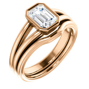 CZ Wedding Set, featuring The Bernadine engagement ring (Customizable Bezel-set Emerald Cut with V-Split Band)