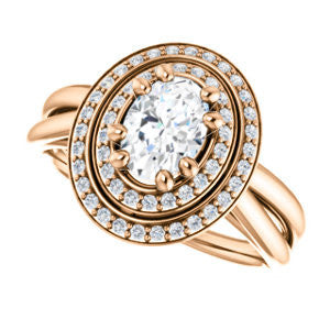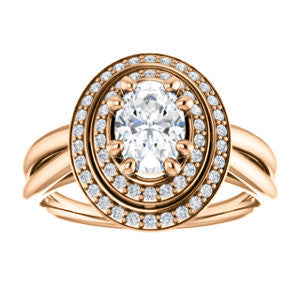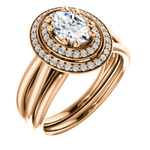 CZ Wedding Set, featuring The Brielle engagement ring (Customizable Oval Cut Cathedral Double-Halo with Curved Split-Band)