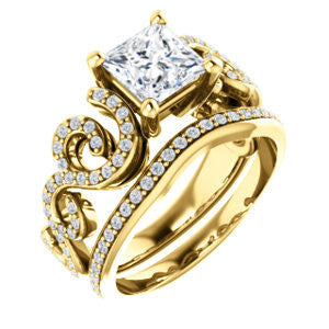 Center Stone Shape: Princess Cut (as pictured). See this customizable ring set with other available center stone shapes here: customize setting.
