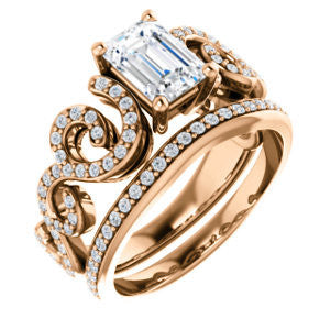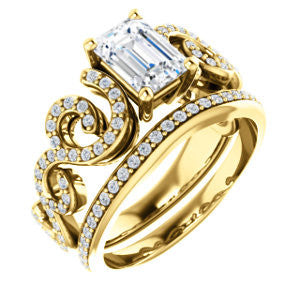 Center Stone Shape: Radiant Cut (as pictured with Emerald cut). See this customizable ring set with other available center stone shapes here: customize setting.