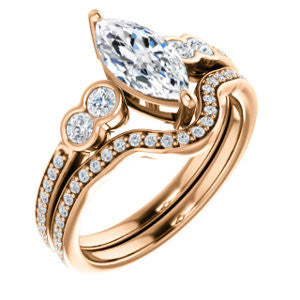 CZ Wedding Set, featuring The Eneroya engagement ring (Customizable Enhanced 5-stone Marquise Cut Design with Thin Pavé Band)