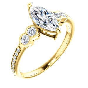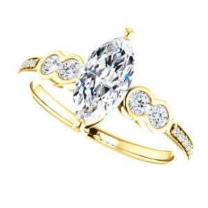 Center Stone Shape: Marquise Cut (as pictured). See this customizable ring set with other available center stone shapes here: customize setting.