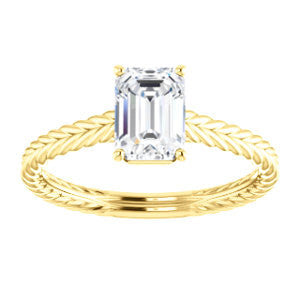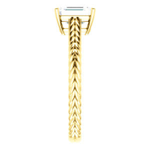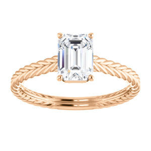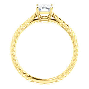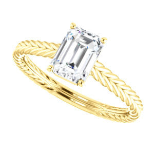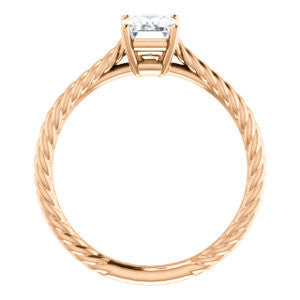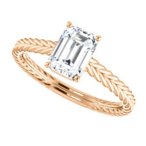 When you find a woman whose beauty is as timeless as an Italian Renaissance painting, a modern trinket simply won't do. The lady who took your breath away deserves a ring that is as classically lovely as she is.The Florence, a vintage, hand-engraved rope-banded solitaire ring topped with a single diamond-quality 5A cubic zirconia stone, was aptly named for just such comeliness. The Emerald Cut solitaire sparkles above a design that simply oozes an old-world style. Take your pick for the carat size of that center stone from 0.33 to 5.0 carats, and you’ll also choose the precious metal for manufacturing (12 options). We’ll make The Florence for you with just the desired center stone size and precious metal you want. But never forget, it’s the band that really sets The Florence apart: a fresh engagement ring look she's dreamed about at a price you can afford without going into indentured servitude.