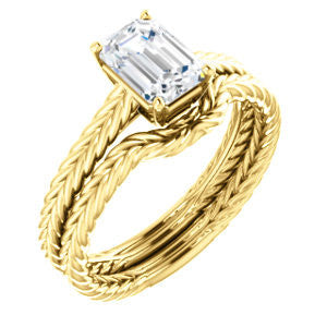 CZ Wedding Set, featuring The Florence engagement ring (Customizable Cathedral-set Emerald Cut Solitaire with Vintage Braided Metal Band)