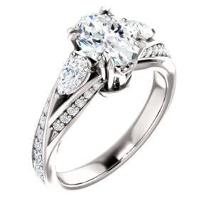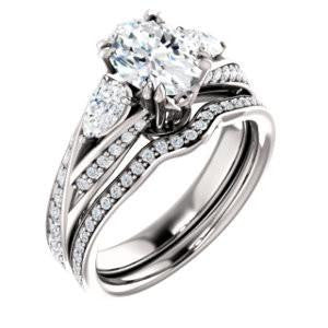 CZ Wedding Set, featuring The Jackie engagement ring (Customizable Oval Center with Flanking Pear Accents and Pavé Band)