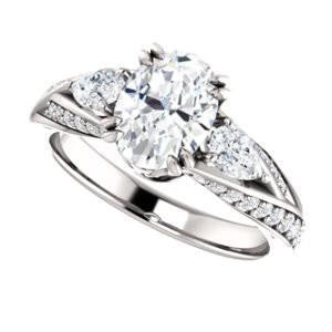 Center Stone Shape: Oval Cut (as pictured). See this customizable ring set with other available center stone shapes here: customize setting.