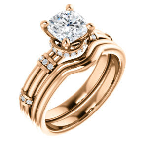 CZ Wedding Set, featuring The Jayla engagement ring (Customizable Cushion Cut Style with Under-Halo & Horizontal Band Accents)
