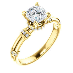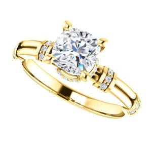 Center Stone Shape: Cushion Cut (as pictured). See this customizable ring set with other available center stone shapes here: customize setting.