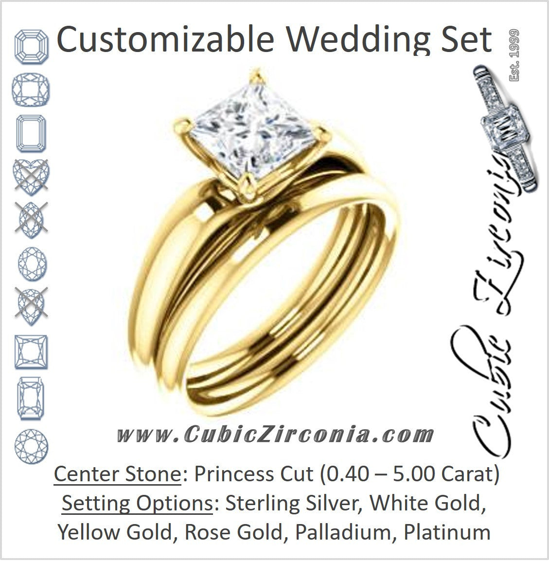 CZ Wedding Set, featuring The Johnnie engagement ring (Customizable Cathedral-set Princess Cut Solitaire with Decorative Prong Basket)