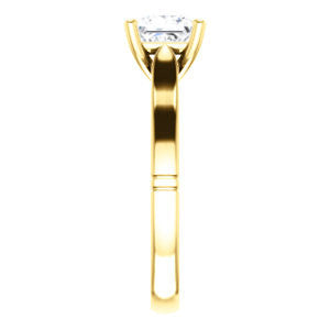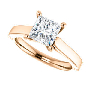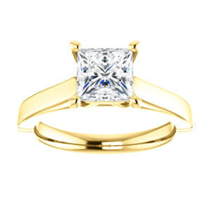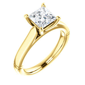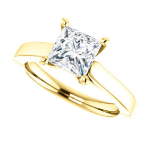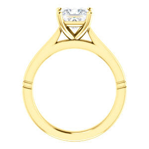 Classic solitaire rings like The Kaela were, are, and always will be comfortable and popular to wear, easy-to-love accouterments without ostentation made for the woman who needs little and lacks for nothing. For a final flourish we put in a worked-metal ribbing on either side of the ring's shoulder shank. Hebrew in origin, the name "Kaela" means 'beloved sweetheart'. Who is your beloved sweetheart? She just may really enjoy this prong-set, cathedral-raised Princess Cut solitaire ring with center stone available in carat size choices 0.4, 0.5, 0.65, 0.75, 1.0, 1.25, 1.5, 2.0, 3.5 or 5.0  carats.