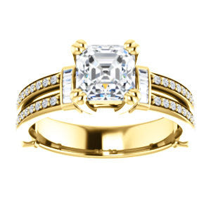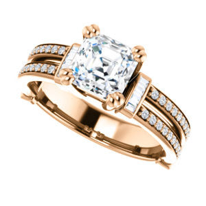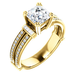 Center Stone Shape: Asscher Cut (as pictured). See this customizable ring set with other available center stone shapes here: customize setting.