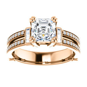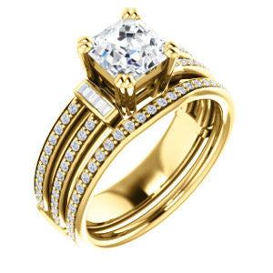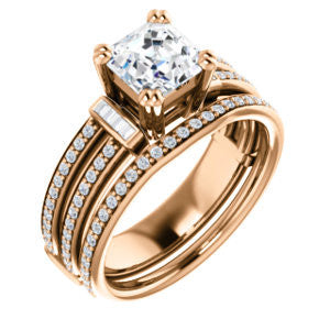 CZ Wedding Set, featuring The Kaitlyn engagement ring (Customizable Asscher Cut with Flanking Baguettes And Round Channel Accents)