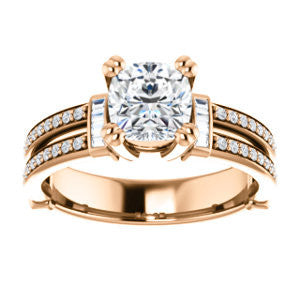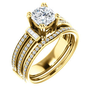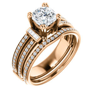 CZ Wedding Set, featuring The Kaitlyn engagement ring (Customizable Cushion Cut with Flanking Baguettes And Round Channel Accents)