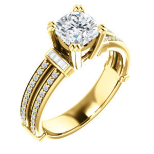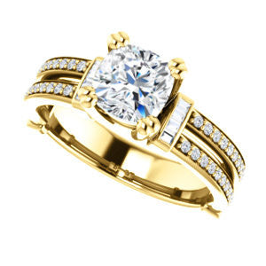 Center Stone Shape: Cushion Cut (as pictured). See this customizable ring set with other available center stone shapes here: customize setting.