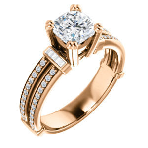 Side Stone(s): Total (56) 5A Cubic Zirconia side stones (8 Baguette 1.25x1.00 mm Channel Setting, 48 Round 1.00 mm Prong Setting)*