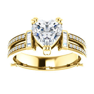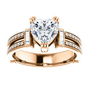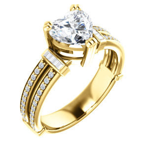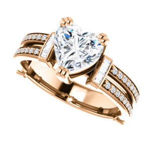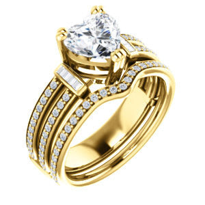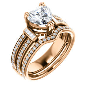 CZ Wedding Set, featuring The Kaitlyn engagement ring (Customizable Heart Cut with Flanking Baguettes And Round Channel Accents)