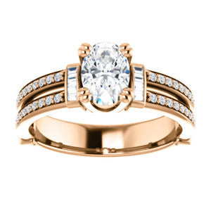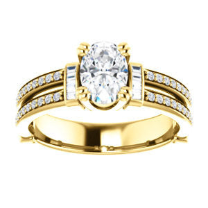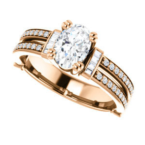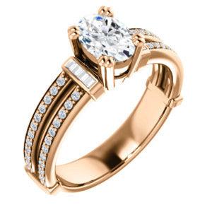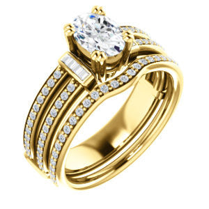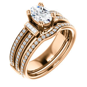 CZ Wedding Set, featuring The Kaitlyn engagement ring (Customizable Oval Cut with Flanking Baguettes And Round Channel Accents)