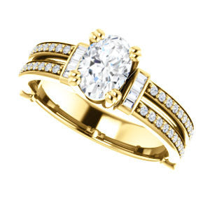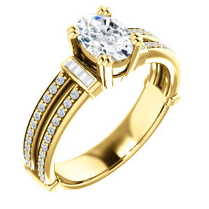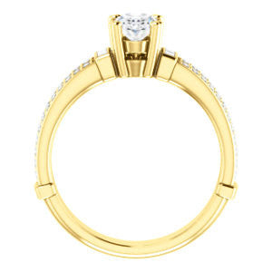 Center Stone Shape: Oval Cut (as pictured). See this customizable ring set with other available center stone shapes here: customize setting.
