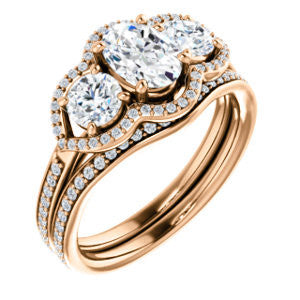 CZ Wedding Set, featuring The Lizabeth engagement ring (Customizable Oval Cut Enhanced 3-stone Style with Tri-Halos & Thin Pavé Band)