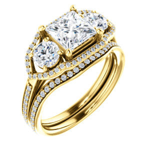 Center Stone Shape: Princess Cut (as pictured). See this customizable ring set with other available center stone shapes here: customize setting.