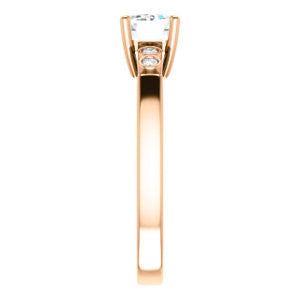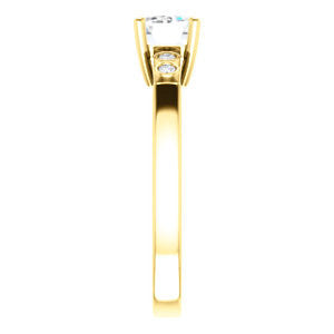 The second L is for Light, from the Latin language “luz” meaning the same, creating both the first sound of the name that rolls off your tongue and the sparkle that glints brilliantly from each of this ring design's four (4) 1.50 mm* bezel-set, round-cut accent stones. The third L? Labor. The phrase “labor of love” means exactly that, and it’s what our master jewelry craftsmen create each time our customers honor us with their purchase. A is for agreeable, for the unselfish couple who compromises when it’s the right thing to do. Of course, A also for the AAAAA (5A) diamond-quality Emerald Cut center stone sized from 0.33 to 5.0 carats we will set securely in the decorative-trellis prongs atop this bridal-style jewelry for a special woman.