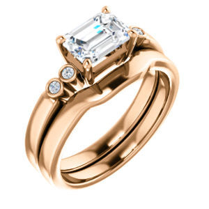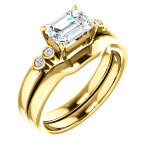CZ Wedding Set, featuring The Luzella engagement ring (Customizable 5-stone Design with Emerald Cut Center and Round Bezel Accents)