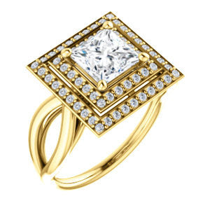 Center Stone Shape: Princess Cut (as pictured). See this customizable ring set with other available center stone shapes here: customize setting.