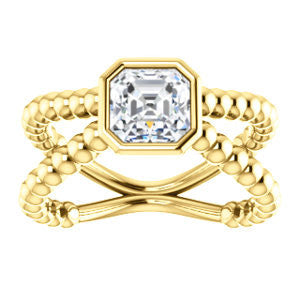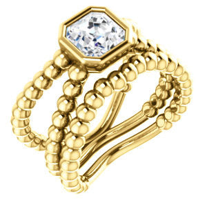 CZ Wedding Set, featuring The Maria Leeslii engagement ring  (Customizable Bezel-set Asscher Cut Solitaire with Wide Beaded-Metal Split-Band)
