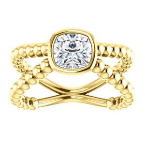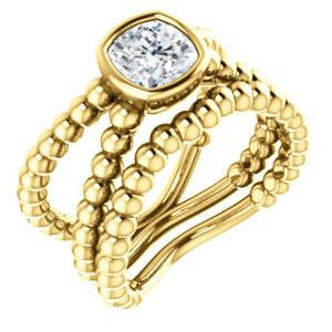 CZ Wedding Set, featuring The Maria Leeslii engagement ring (Customizable Bezel-set Cushion Cut Solitaire with Wide Beaded-Metal Split-Band)