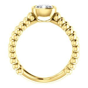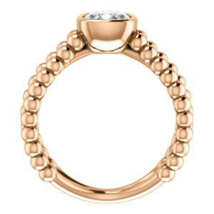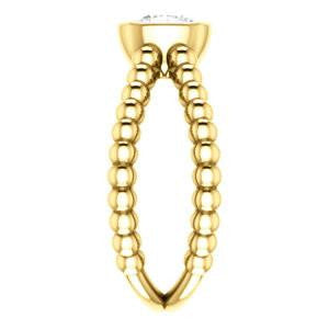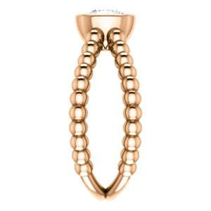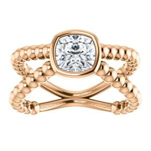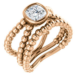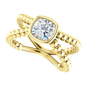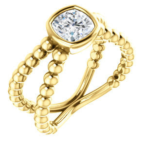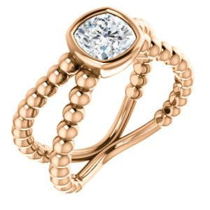You just received an invitation to Count Oakmont’s housewarming party in Edinburgh. Do you go with formal? Semi-formal? The invite says “black tie optional”. So which option do you choose for HIM, since God knows he can’t be relied upon to make that call?! You’ll have one less concern in a life of making decisions for him the day he made one great decision to marry you, because he gave you The Maria Leeslii, a Cushion Cut solitaire engagement ring that is casual panache at its finest, with maybe just a hint of ostentation in her beaded metal beauty. And now you know exactly what you’ll be wearing, and best of all most of them haven’t even seen you since he proposed. A boldly-placed, bezel-set sparkler of a 5A diamond-quality cubic zirconia center stone is enhanced by a split-band design looking like a double strand of beads twisting ‘round the finger to catch the eye and pull it upwards to focus on center solitaire.