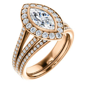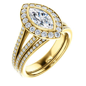 CZ Wedding Set, featuring The Maricela engagement ring (Customizable Bezel-Halo Marquise Cut Ring with Wide Tapered Pavé Split Band & Decorative Trellis)