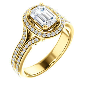 Center Stone Shape: Emerald Cut (as pictured). See this customizable ring set with other available center stone shapes here: customize setting.