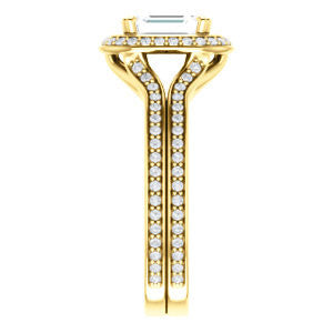 CZ Wedding Set, featuring The Mia Sofia engagement ring (Customizable Cathedral-Halo Emerald Cut Style with Wide Split-Pavé Band)