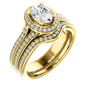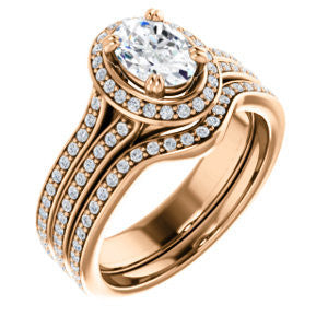 CZ Wedding Set, featuring The Mia Sofia engagement ring (Customizable Cathedral-Halo Oval Cut Style with Wide Split-Pavé Band)