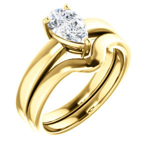 CZ Wedding Set, featuring The Myaka engagement ring (Customizable Pear Cut Solitaire with Medium Band)