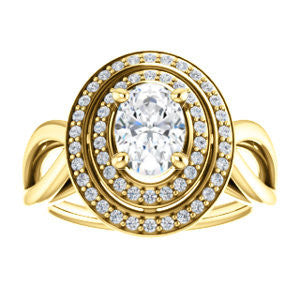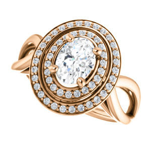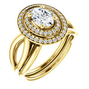 CZ Wedding Set, featuring The Magda Lesli engagement ring (Customizable Double-Halo Style Oval Cut with Curving Split Band)