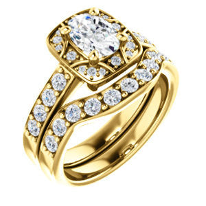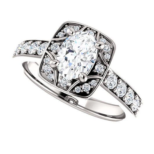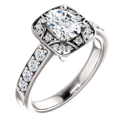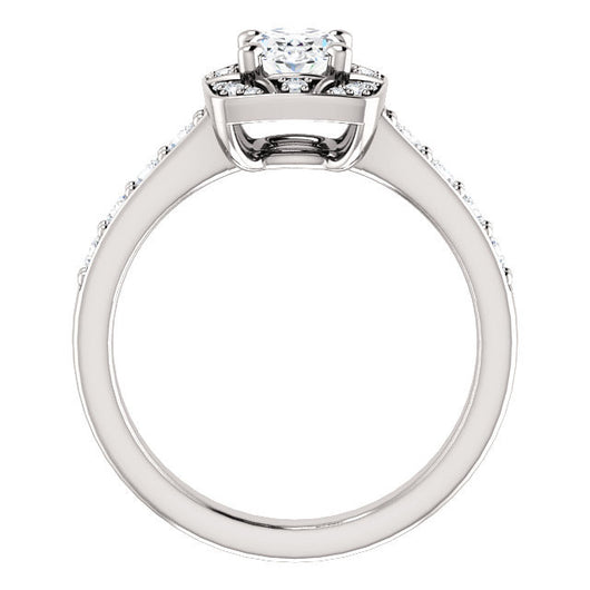 Center Stone Shape: Oval Cut (as pictured). See this customizable ring set with other available center stone shapes here: customize setting.