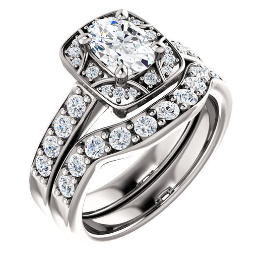 CZ Wedding Set, featuring The Payton engagement ring (Customizable Oval Cut with Segmented Cluster-Halo and Large-Accented Band)