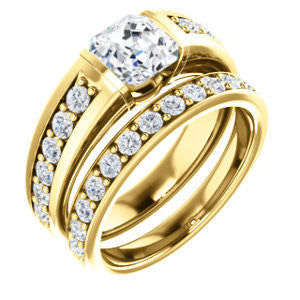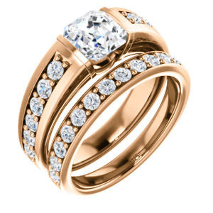 CZ Wedding Set, featuring The Rosemary engagement ring (Customizable Asscher Cut Tension Bar Set with Wide Channel/Prong Band)