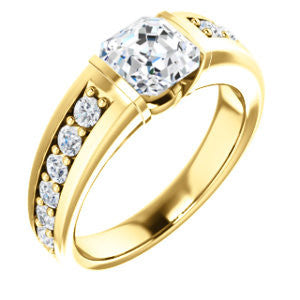 Center Stone Shape: Asscher Cut (as pictured). See this customizable ring set with other available center stone shapes here: customize setting.